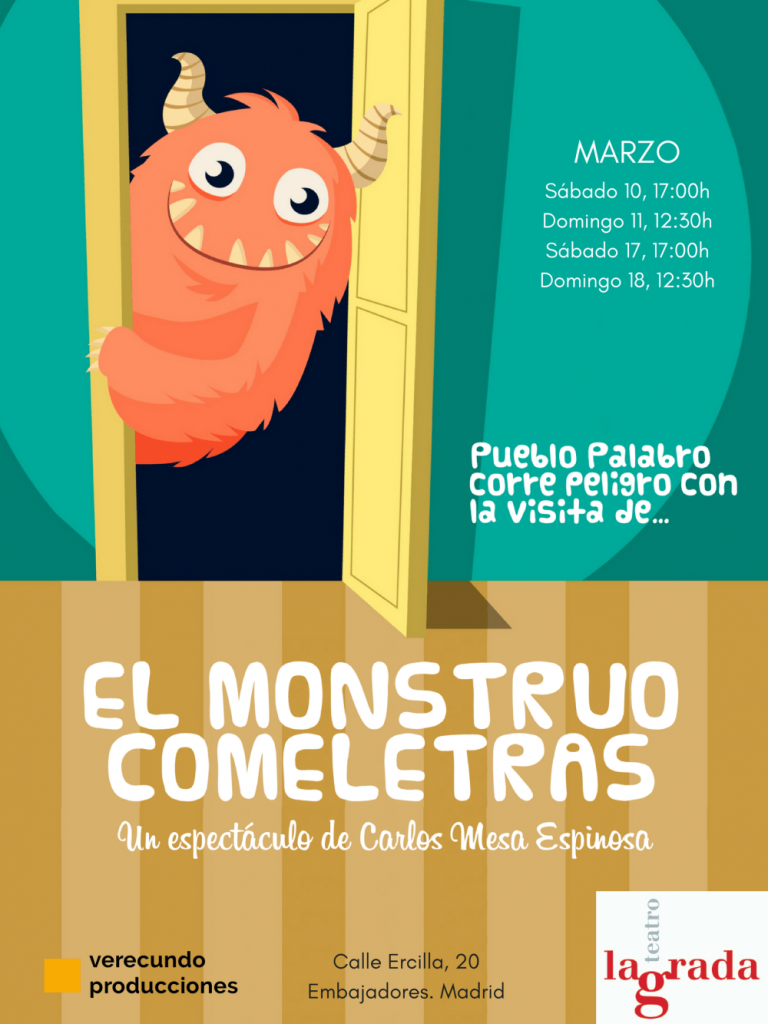 Este sábado se estrena en el teatro Lagarda el  espectáculo familiar EL MONSTRUO COMELETRAS .Un espectáculo familiar para descubrir (o re-descubrir) el amor por las palabras, recomendado a partir de 3 años.